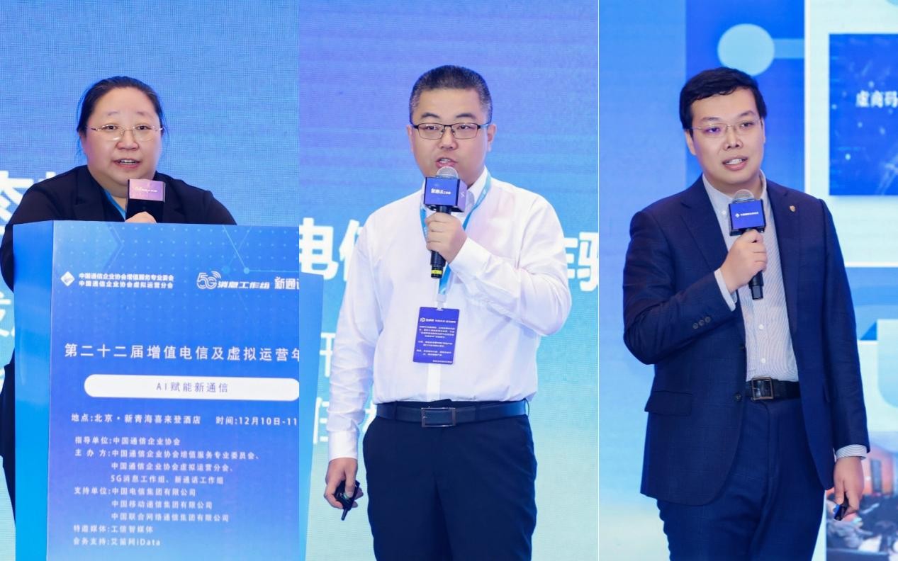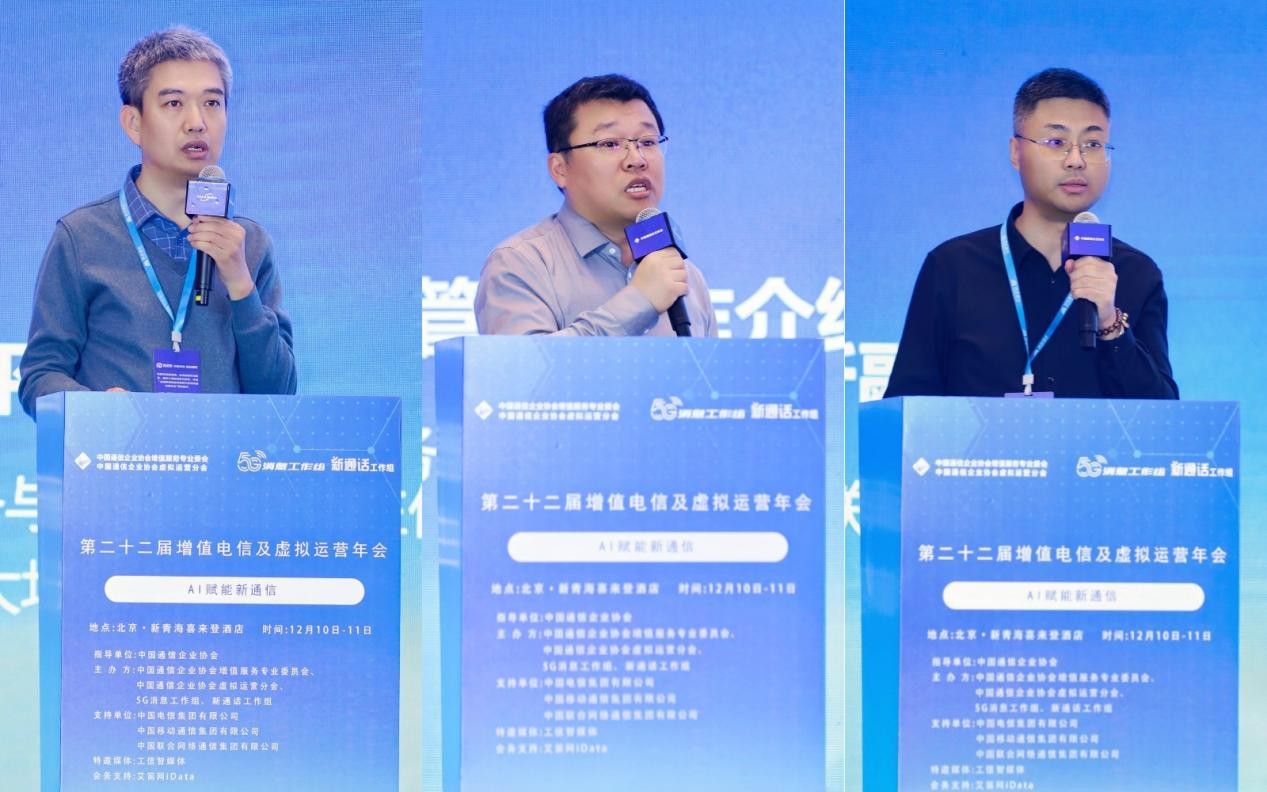 基础运营商代表围绕行业热门话题进行了深入剖析和分享,为与会者提供了宝贵的行业见解和启示。中国电信集团有限公司市场部产品中心产品一处处长赵文军总结了中国电信今年5G消息和5G增强通话的发展情况,分享了2026年的产业规划。中移互联网有限公司5G新通话产品总师曾囡莉阐述了目前行业如何借助AI,推动通信业务向智能服务转型的战略与实践。联通在线信息科技有限公司网络产品部总经理韩晓玉详述了联通在线在5G消息、新通话业务与AI融合创新的探索与实践。中电信人工智能科技(北京)有限公司副总经理杨戈介绍了公司如何聚焦通信业务AI化,打造智能体平台开放赋能,并提出目前运营商最应该做的是基础业务AI化的观点。中国移动在线营销服务中心AI能力中心总经理王韬揭秘了中国移动在线营销服务中心如何通过数智化应用及AI的加持,从人工密集型企业逐步演变为科技创新型企业。联通沃悦读科技文化有限公司(联通在线长沙公司)党总支书记、总经理、执行董事王振波从“数字+文化”融合入手,提出以数字IP运营为核心引擎,推动传统增值业务公司产品与运营转型。中国电信集团有限公司全渠道运营中心渠道规划管理室(转售合作室)副经理黄智敏介绍了合规稳健发展的转售合作工作思路,赋能支持转售企业与时俱进完善管理、健全能力,坚定不移走好高质量发展之路。中国移动通信集团有限公司市场经营部协同发展处处长刘晓川建议在传统市场进入存量竞争的当下,企业需主动求变,打破“卷价格、卷资费的传统模式,向高科技数字信息化产品转型,通过技术应用与模式突破打造品牌价值。在中国联合网络通信集团有限公司公众客户事业部综合管理与运营总监魏宏业看来,目前合规管理初见成效,未来中国联通将继续加强合规管理,携手各企业维护清朗的通信环境,夯实高质量发展根基。